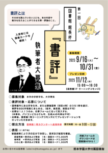 応募後は、図書館1階ラーニングコモンズで書評のプレゼンテーションを行っていただき、入賞者には図書カードを進呈いたしますので、ぜひこの機会にご応募ください。